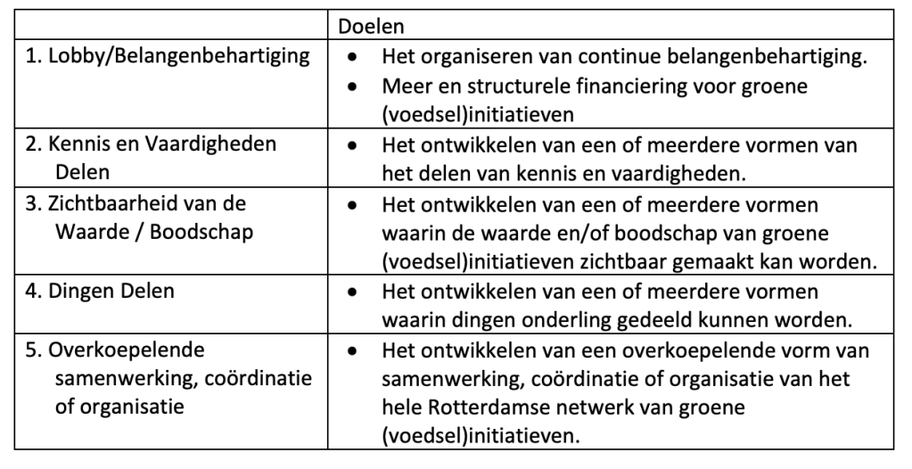 bijdragen aan de bestendigheid van groene (voedsel)initiatieven. Initiatiefnemers uiten bijna