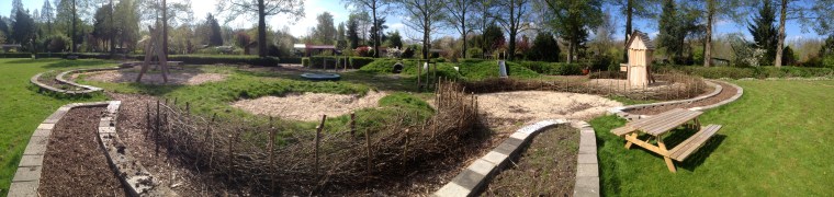 De tuin is nog steeds in ontwikkeling. De houtwalletjes zijn nog niet af en zullen nog een deel van de tuin doorkruisen. De verhoogde bakken zullen binnenkort ingezaaid worden. En we gaan ook nog een mooie wilgentunnel maken.